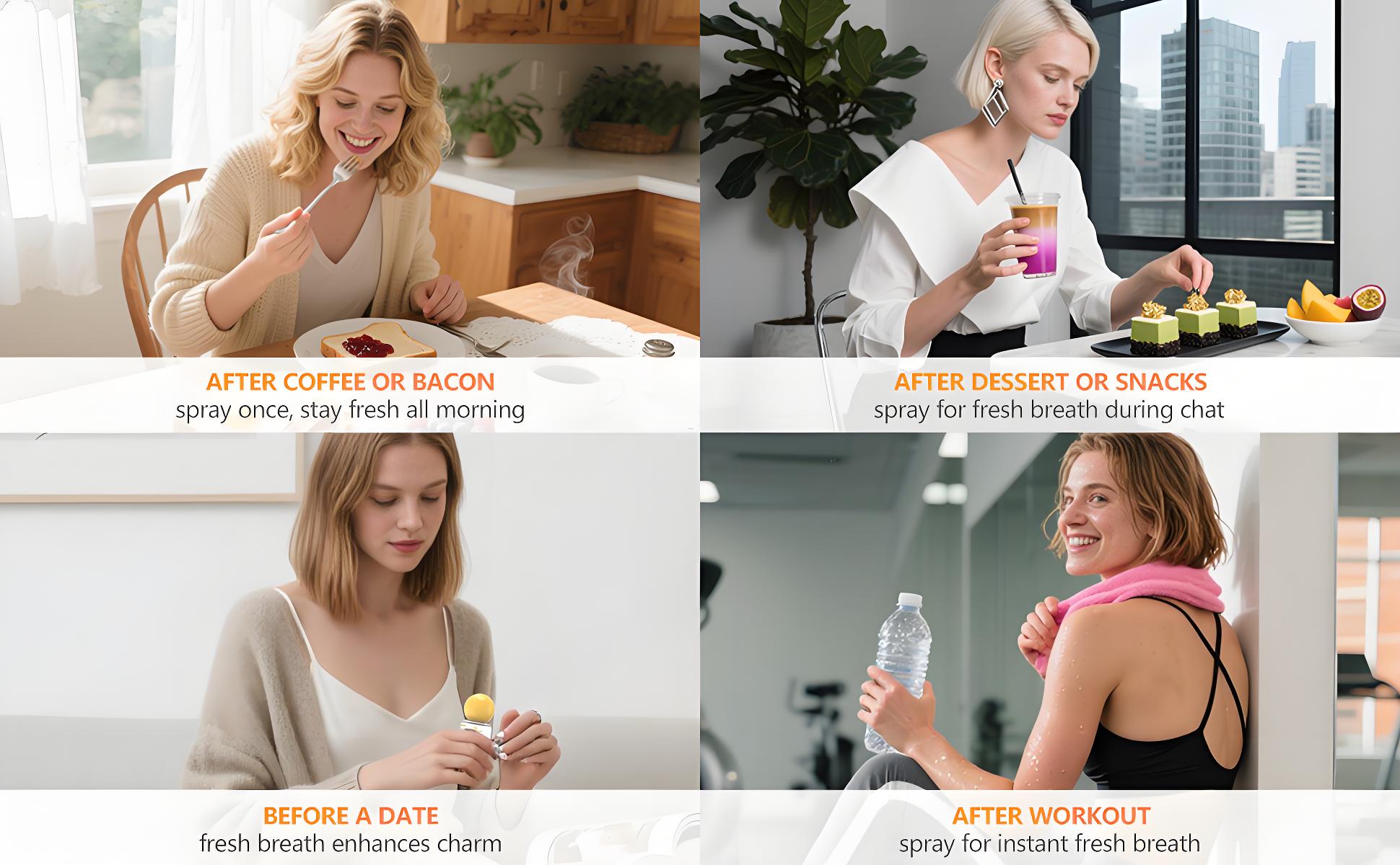 This zesty orange oral mist delivers a bright, uplifting flavor with a clean and refreshing mouth feel. Designed for quick use anytime during the day, it helps you feel more confident after meals, coffee, or long conversations. The compact spray format makes it easy to carry, offering a simple way to refresh your breath in seconds. Light, fruity, and smooth — it’s an easy addition to your daily routine.